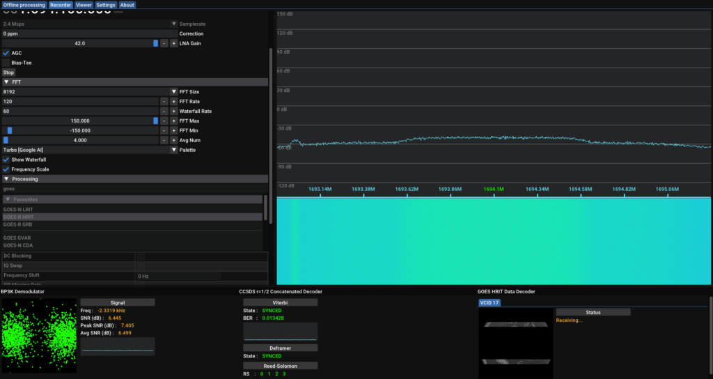 This post was made with images and testing goestools with vit average 76. There is also other guides on using SatDump command line or Windows version. I suggest looking at https://usradioguy.com/receiving-goes-hrit-with-satdump/ for additional information.