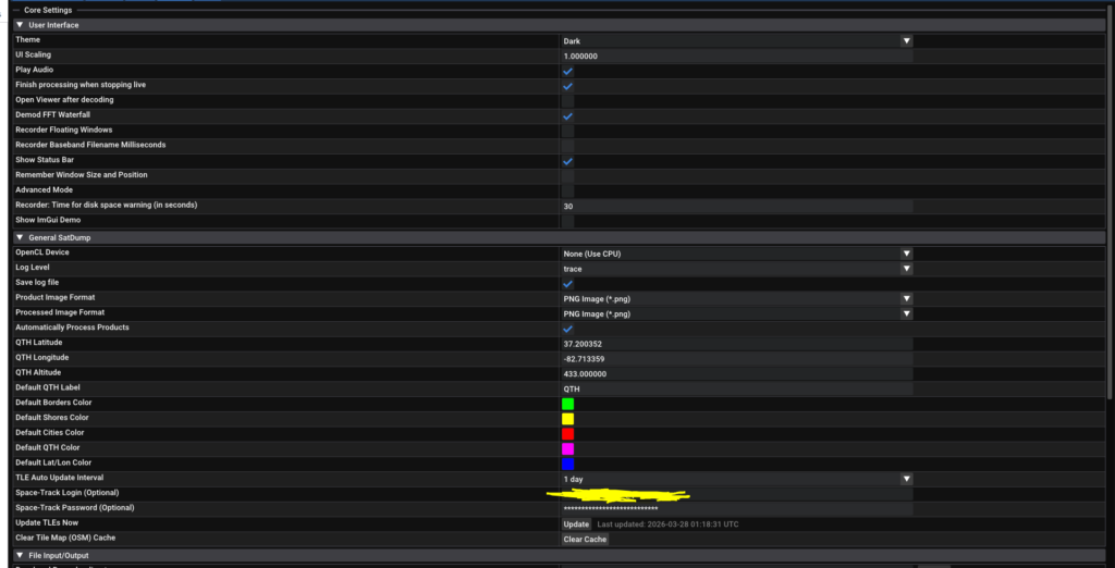 Now you are ready for Satdump! There is a few different types of ways and tutorials of jumping straight away but download Satdump if you have not already from here – https://www.satdump.org/download/ and open it up. Go settings and setup the General SatDump and File Input/Output settings.